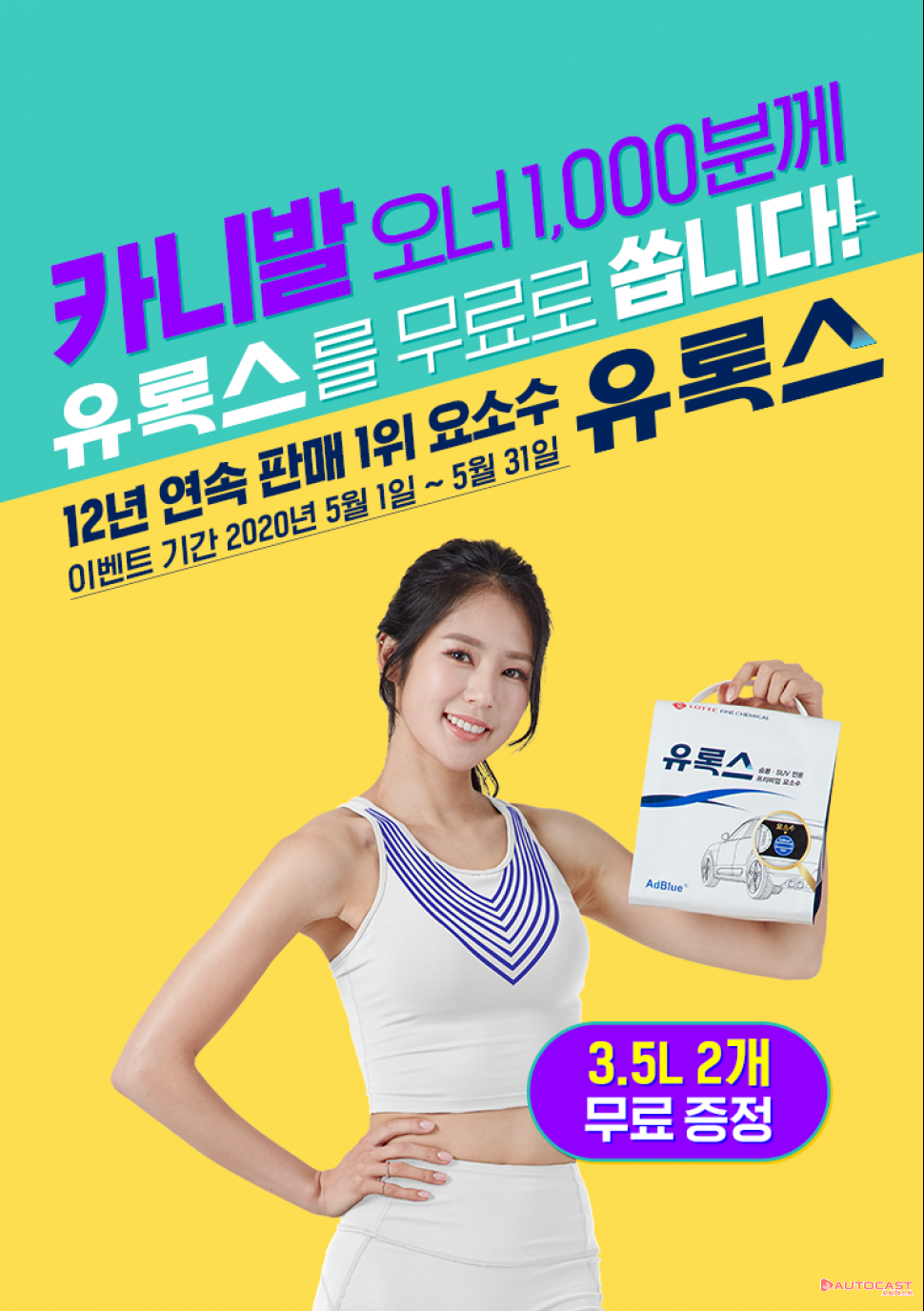 기아 카니발 디젤 차주는 연식에 상관없이 누구나 유록스 홈페이지(eurox.co.kr)에서 참여할 수 있다. 응모 마감은 5월 31일이다. 본인 소유의 차량 번호를 입력하면 추첨을 통해 1인당 유록스 프리미엄 3.5ℓ 2개를 증정하고, 당첨 여부는 6월 15일 이벤트 페이지를 통해 확인할 수 있다.